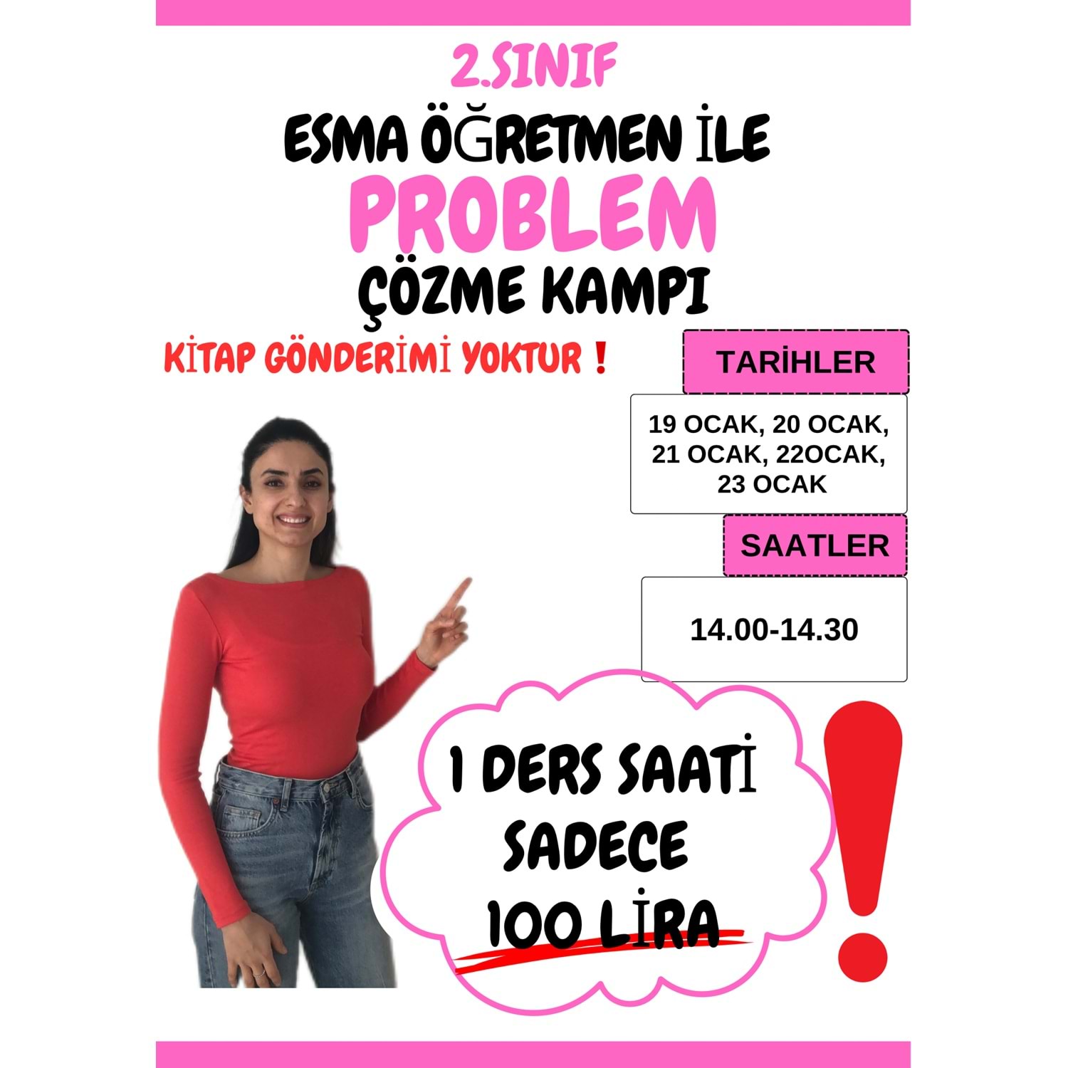 5 dersin tamamı tek fiyat. Başka ödeme yok. Tarih seçmiyorsunuz. Yazan tarihlerin hepsinde 1 ders saati yani 30 dakika ders olacak. Ders, zoom üzerinden canlı olarak yapılacak. Derse katılamadığınız günler için dersler kayıt olacak. 20 Şubat tarihine kadar ders kaydını izleyebilirsiniz. Satın alma işlemini yaparken Mobil Telefon bölümüne WhatsApp a eklenmek istediğiniz numarayı yazın. Kampın başlama tarihinden 2-3 gün önce whatsApp grubuna ekleneceksiniz. 0543 139 21 42 ve 0543 102 42 21 nolu numaralar ile whatsap grubuna ekleneceksiniz. WhatsApp gruba sadece 1 numara eklenecek. Zoom ders linki her ders günü gruptan paylaşılacaktır. Bilgisayar, tablet, telefon herhangi biri ile kampa katılabilirsiniz.Cihazınızda zoom uygulaması olması yeterli. Dersimizde 25 problem çözeceğiz. Problem çözme teknikleri tüm detaylarıyla anlatılacak. 25 problem WhatsApp grubu oluşturulduktan sonra gruba PDF olarak whatsapp grubuna gönderilecek. Çıktı alabilirsiniz. Çocuklar çözmesin. Ders başladığında çözülecek. GRUPTAKİ KİŞİ SAYISI KATILIMA GÖRE FARKLILIK GÖSTERMEKTEDİR. Birebir problem çözümü yapılmıyor. Zoom uygulamasında çocuklar sesini açmıyor. Öğretmenimiz anlatacak çocuklar dinleyecek. Grup derslerimizde kişi sınırımız yoktur. Herkes evinde birebir izlediği için kişi sayısının çocuğa etkisi yoktur.